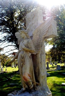 Yesterday was a glorious autumn day. The sky was bright blue and perfectly clear, the sun was shining, and my world was still. The reverence of the day inspired me to grab our Nikon and stroll through Crown Hill Cemetery to experiment with shadow and light. Giles and I love historic cemeteries, and Crown Hill is one of our favorites, a true gem in the heart of downtown. Wherever we vacation, we try to find an old cemetery to explore. Once, in Charleston, we discovered a tiny, gated cemetery tucked behind an old church, with tombstones dating back to the 1700s. A vicious swarm of mosquitoes, coupled with burgeoning nightfall and the threat of being locked inside, forced us back to our car before we really had a chance to explore it.